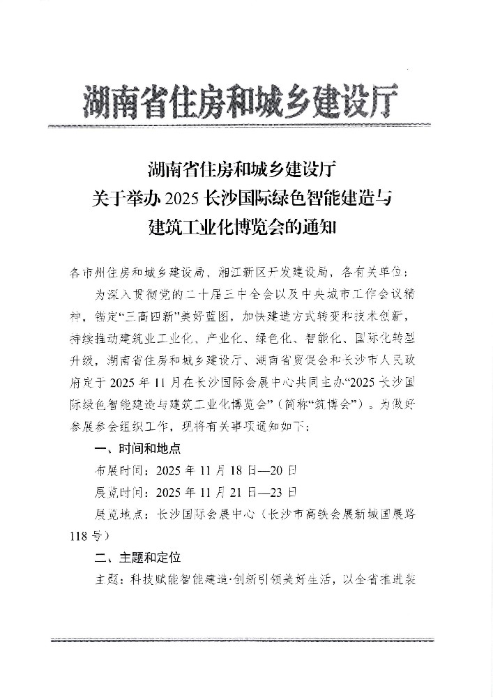 关于举办2025长沙国际绿色智能建造与建筑工业化博览会的通知