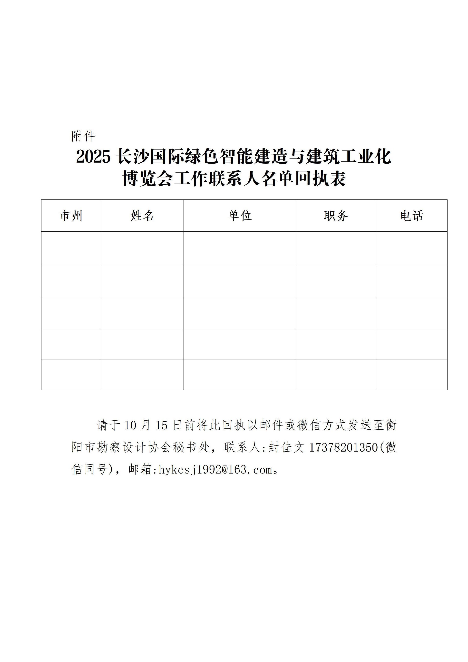 2025长沙国际绿色智能建造与建筑工业化博览会工作联系人名单回执表.docx